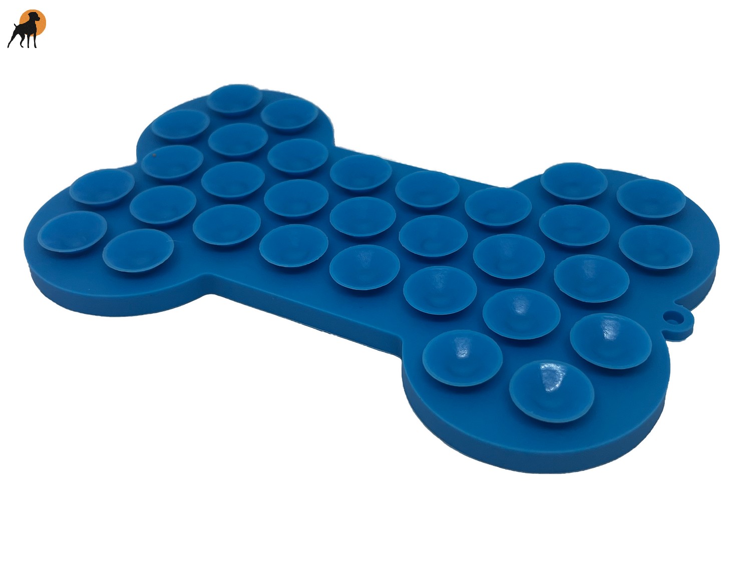 Mit dieser Schleckmatte in Knochenform mit Saugnäpfen machst du deinem Liebling eine riesen Freude und tust ihm darüber hinaus etwas Gutes. Die integrierten Vertiefungen in Wabenform können mit Pasten, Nassfutter oder Molkereiprodukten bestrichen und mit Snacks oder Trockenfutter befüllt werden. Sie geben dem Futter Halt und