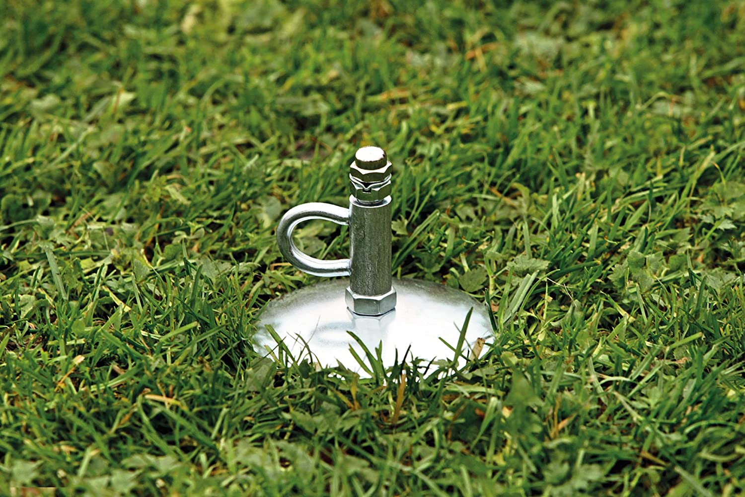 Dieser verzinkte Anlegepflock wird einfach ins Erdreich "gedrückt" Es können auch größere Hunde sicher abgelegt werden.