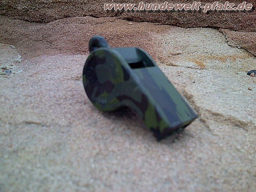 Diese Trillerpfeife aus Kunststoff hat einen lauten Trillerton. Eine Pfeife kann man zum Rufen des Hundes verwenden. Man sollte allerdings frühzeitig damit beginnen, den Hund an das Geräusch zu gewöhnen (z.B. um ihn "Down Trillern", oder zur Fütterung zu rufen). So kann der Spaziergang auch ohne lautes Rufen und Suchen nach dem Hund verlaufen.