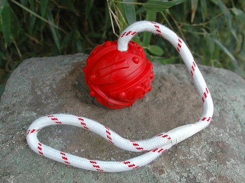 Dieser Ball am Band lässt sich sehr gut werfen bzw. wegschleudern. Er eignet sich zum Apportieren an Land sowie aus dem Wasser. Weiterhin lassen sich mit diesem Spielzeug hervorragend Zerrspiele machen.
