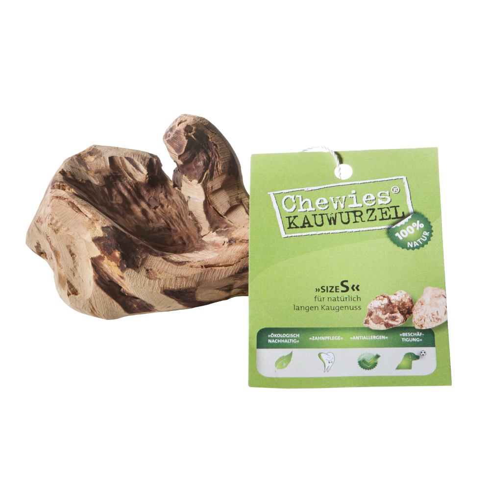Die Chewies Kauwurzel ist ein beliebtes Hundespielzeug und ein völlig natürliches Kauprodukt. Sie hält mehrere Monate und wird je nach Kauintensität nach und nach kleiner. Wenn sie eine Größe erreicht, die Ihr Hund verschlucken könnte, tauschen Sie die Wurzel bitte gegen eine neue aus. Die Chewies Kauwurzeln sind in drei Größen erhältlich, da wir empfehlen, die Größe der Kauwurzel an die Beißkraft Ihres Hundes anzupassen: