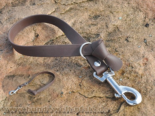 Ideale Kombination als Kurzführer mit Handschlaufe und Sportleine. Die Handschlaufe läßt sich durch den Ring herausziehen und wird dadurch zur Kurzleine.