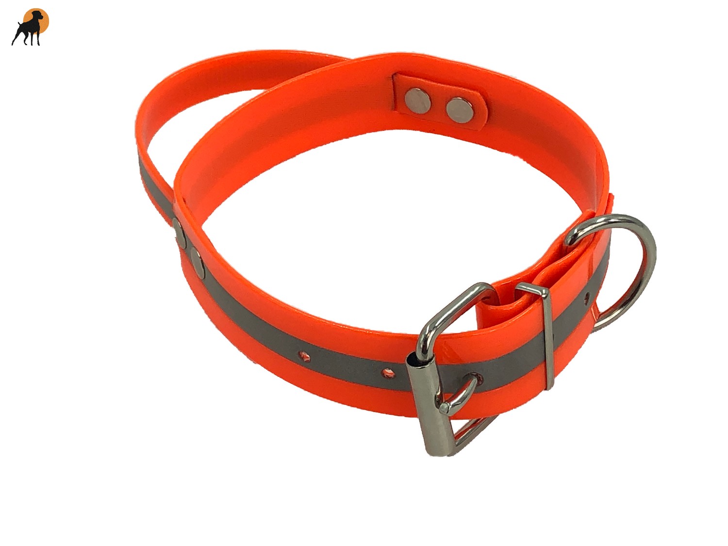 Dieses Material verursacht keine Scheuerstellen am Hals des Hundes. Es schimmelt nicht und nimmt keine Feuchtigkeit auf, ist wesentlich haltbarer als Leder oder herkömmliches Nylon.