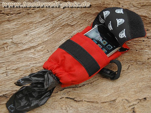 Im inneren des Hygiene-Kits ist Platz für Reservebeutel, Handy, Hundemarke, Schlüssel o.ä. Mit Gürtelclip und 2 Klettverschlüssen auf der Rückseite.