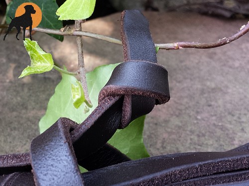 Hochwertiger Schweißriemen aus Fettleder, aus einem Stück geschnitten. Mit Messingschnalle an einer Seite zum Anschlaufen an die Schweißhalsung, ohne Handschlaufe