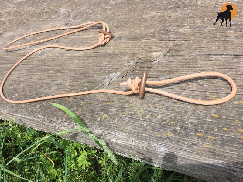 Pirschleine aus 6mm Rundleder mit 2 Holzknebel.