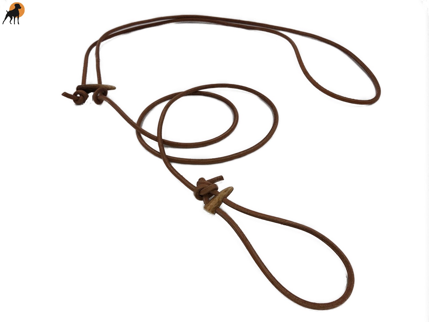 Pirschleine aus 6mm Rundleder mit 2 Hornknebel.