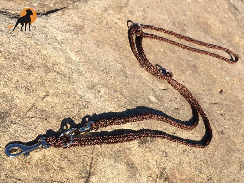 Preview: G1 Tauwerk Doppelführleine 3-fach verstellbar, 9mm x 230cm, Scharz/Terracotta