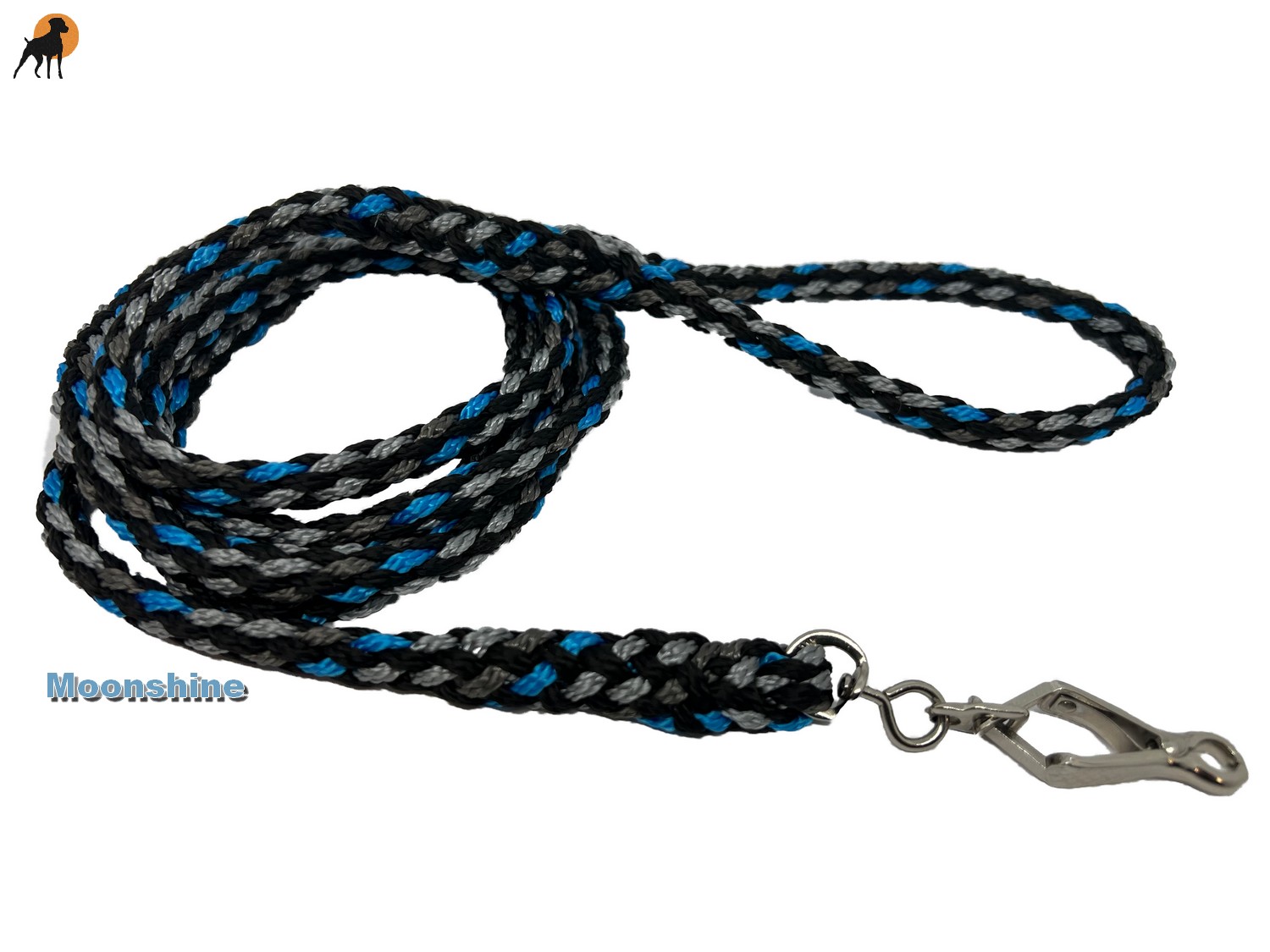 Tauwerk Führleine G1 handgeflochten, 9mm mit Handschlaufe, Zangenhaken (Sprenger), verchromt