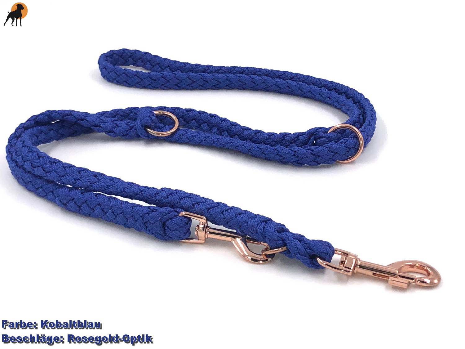 Tauwerk Doppelführleine G2, handgeflochten, 3-fach verstellbar, 12mm x 230cm, Kobaltblau