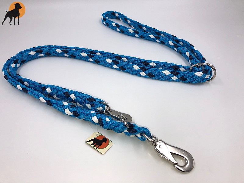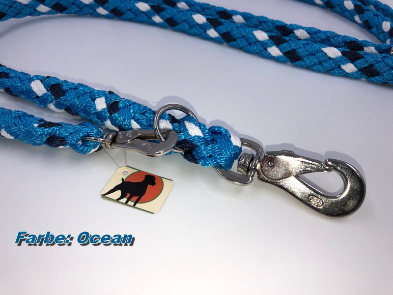 Unsere Bestseller-Doppelführleine wurde mit einem perfekten Detail überarbeitet und weiter entwickelt. Anstelle der Beiden eingeflochtenen Ringe kommt hier ein variabler, verschiebbarer Ring zum Einsatz, der alles Varianten der Doppelführleine zuläßt. Ob Umhängeleine, Führleine doppelt oder Führleine lang mit Handschlaufe - mit einem Handgriff lassen sich alle Optionen dieser Leine mühelos einstellen. 1a Qualität der Materialien sowie die perfekte Verarbeitung zeichnen diese Hundeleine aus. Das Material ist leicht und geschmeidig, extrem reißfest, wasserabweisend und pflegeleicht. Für den täglichen Gebrauch bestens geeignet.