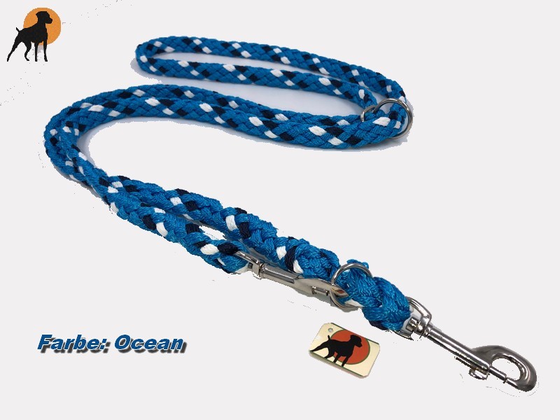 Unsere Bestseller-Doppelführleine wurde mit einem perfekten Detail überarbeitet und weiter entwickelt. Anstelle der Beiden eingeflochtenen Ringe kommt hier ein variabler, verschiebbarer Ring zum Einsatz, der alles Varianten der Doppelführleine zuläßt. Ob Umhängeleine, Führleine doppelt oder Führleine lang mit Handschlaufe - mit einem Handgriff lassen sich alle Optionen dieser Leine mühelos einstellen. 1a Qualität der Materialien sowie die perfekte Verarbeitung zeichnen diese Hundeleine aus. Das Material ist leicht und geschmeidig, extrem reißfest, wasserabweisend und pflegeleicht. Für den täglichen Gebrauch bestens geeignet.
