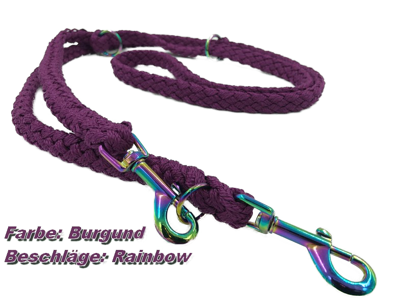 Tauwerk Doppelführleine G2, handgeflochten, 3-fach verstellbar, 12mm x 230cm, Burgund