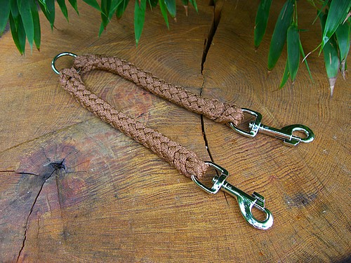 Polypropylentauwerk 12mm, doppelt geflochten (ergibt einen Durchmesser von Ø ca. 20mm – Karabinerkaken vernickelt. Gesamtlänge ca. 30 / 40 / 50cm, Sonderlängen oder Koppeln für weitere Hunde sind auf Anfrage möglich.