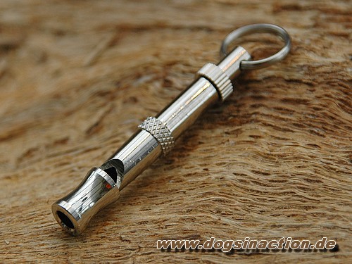 Hochfrequenzpfeife, einfach Hochfrequenzpfeifen aus Metall gibt es mit und ohne Frequenzschutz. Hunde hören in einem anderen Frequenzbereich als Menschen. Dieses macht man sich zu Nutzen indem man Pfeifen verwendet, die Töne in einem so hohen Frequenzbereich ausstoßen, die für den Menschen kaum bzw. gar nicht zu hören sind.