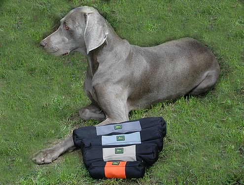 Dank einer abwaschbaren Innenbeschichtung und einem leicht zu öffnenden Reißverschluss lässt sich dieser neuartige Dummy aus reißfestem Nylon mit Snacks befüllen. Der Dummy wird geworfen und vom Hund apportiert.