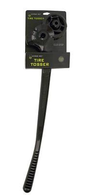 Durch Ausholen wird das Rad schwungvoll aus der Halterung gelöst und rollt mit hoher Geschwindigkeit über den Boden.