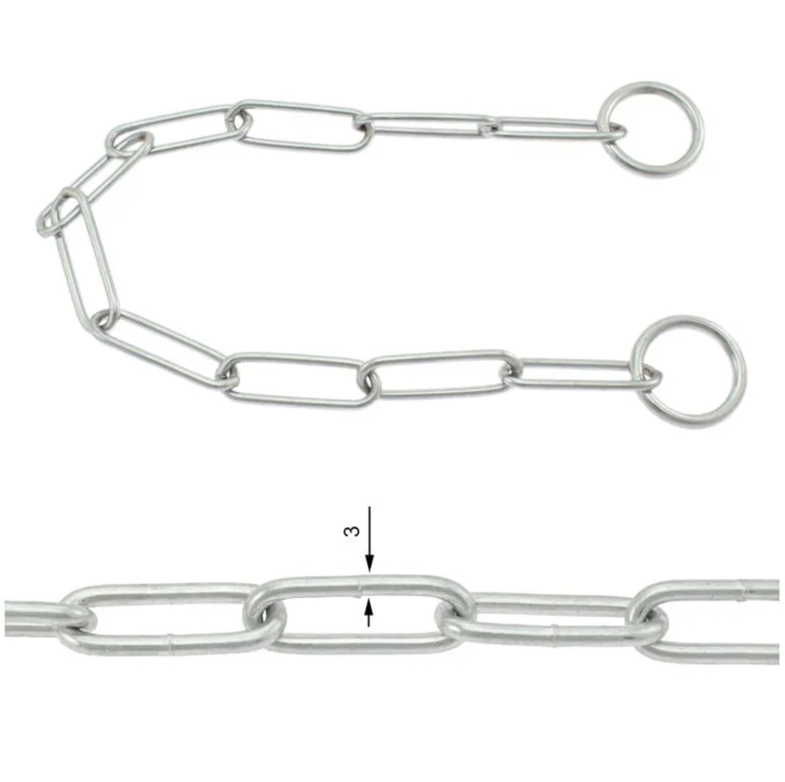 Diese Kettenhalsungen haben große Kettenglieder, die besonders schonend für den Hals des Tieres sind.