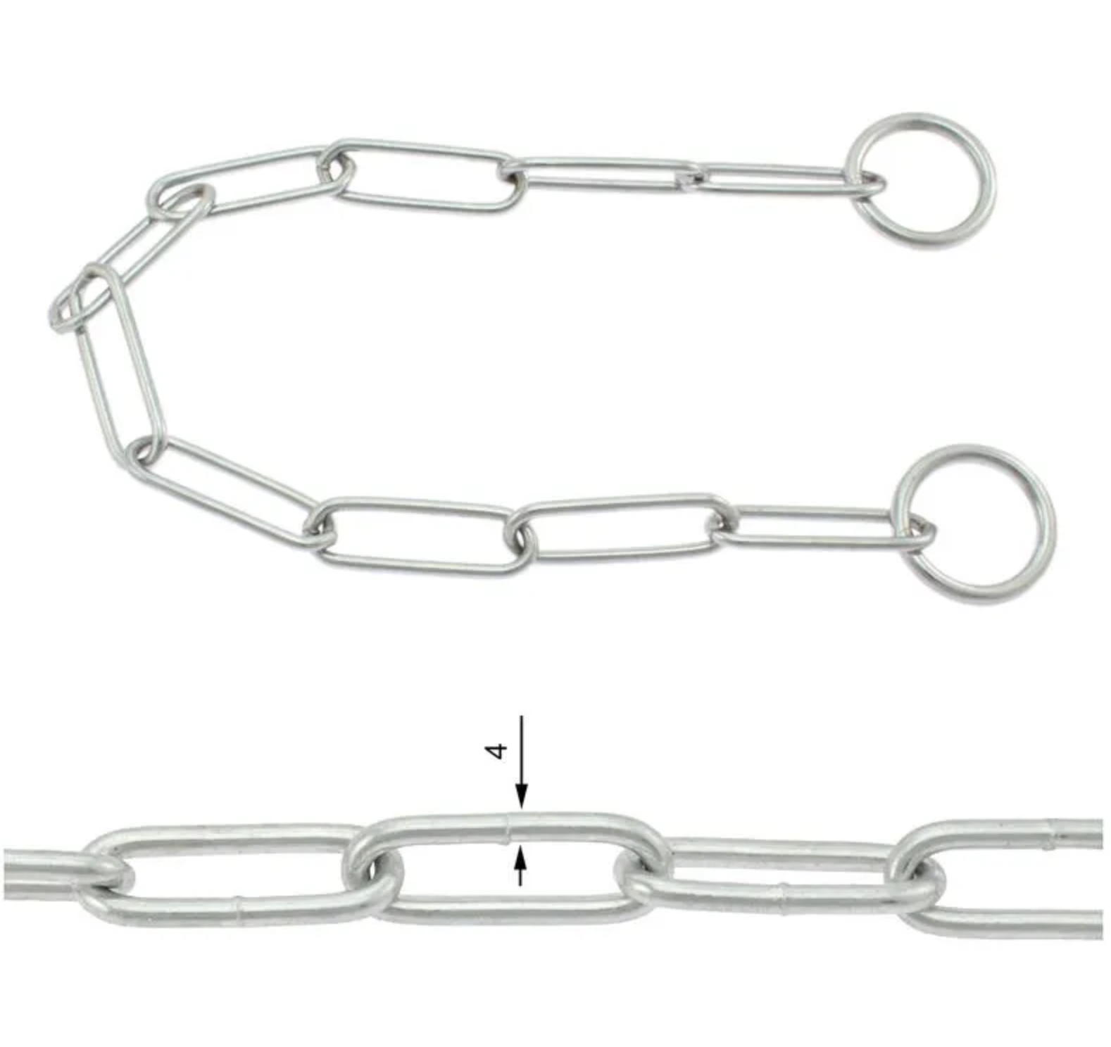 Diese Kettenhalsungen haben große Kettenglieder, die besonders schonend für den Hals des Tieres sind.