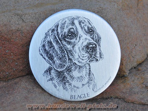 Metallplakette selbstklebend, Motiv: Beagle