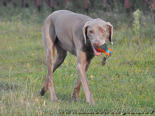 Der Dummy Ball ist klein und handlich und hat somit Platz in jeder Jackentasche. Durch seine kompakte Form und seines gewichtes von ca. 150g kann man diesen Dummy Ball sehr weit werfen, 50 Meter sind möglich.