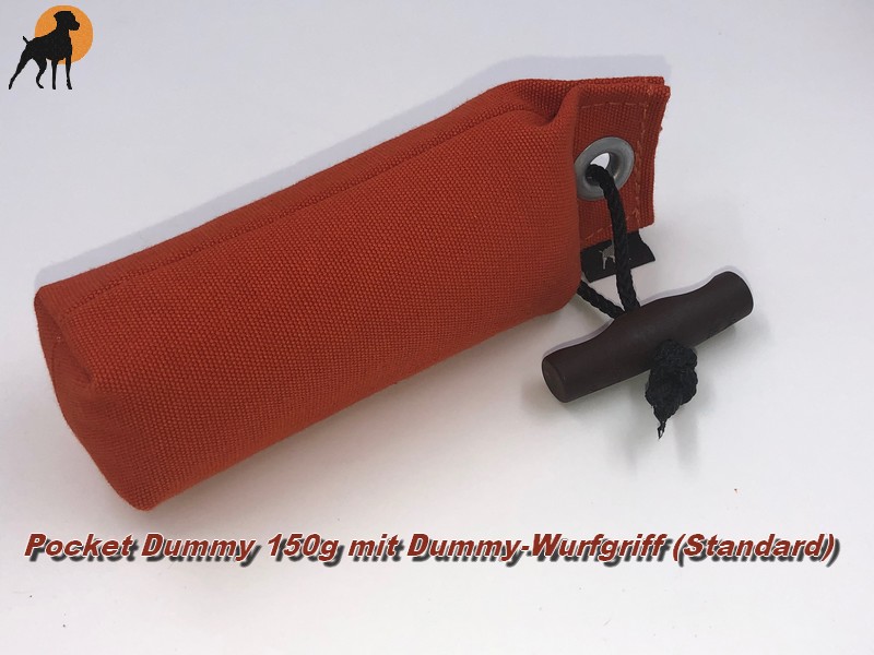 Wir, das Team der Hundewelt-Pfalz haben bei der Entwicklung dieses Dummys mitgewirkt. Die Idee für ein 150 gr- Dummy kam uns beim Training. Die Lücke zwischen den kleinen Pocket-Dummies (85gr.) und den Junior-Dummies (250-300gr.) war uns zu groß und sollte geschlossen werden. Sowohl Gewicht als auch die Abmessungen sollten genau in der Mitte dieser beiden Größe liegen.