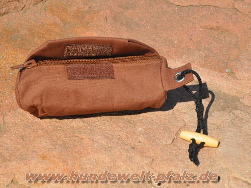 Aus robustem Leinen (bis 30 Grad in der Maschiene waschbar), ausgestattet mit einer Wurflkordel. Für Naß- und Trockenfutter geeignet. Optimale Stimulation für soziales Lernen. Hilft den Jagdinstinkt des Hundes sinnvoll in der Erziehung zu Nutzen.