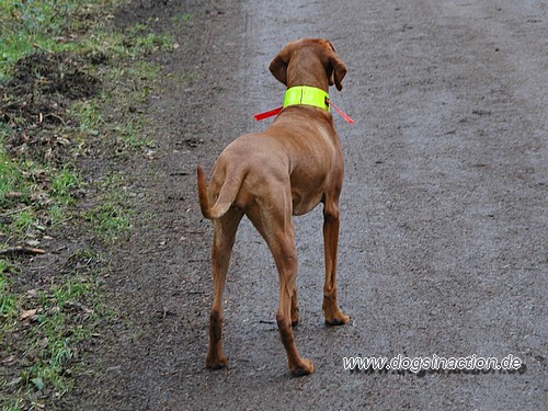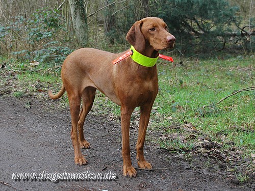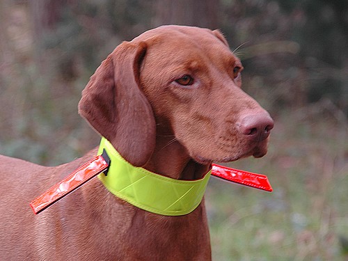 Stark reflektierende Warnhalsung 50mm breit, mit 2 seitlichen Fahnen zur besseren Erkennung ihres Hundes von Vorne, Hinten oder von Oben (z.B. Hochsitz).