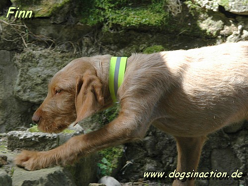 Zum einen verringerte diese Halsung die Gefahr, daß der Hund von einem ansitzenden Jäger mit Wild verwechselt wird, zum anderen reflektieren diese Halsungen hervorragend das Licht herankommender Fahrzeuge. Außerdem kann man diese Halsungen mit der Telefon- oder Handynummer beschriften, daß sofort reagiert werden kann, falls der Hund mal bei der Jagd oder beim Spaziergang abhanden kommt und von jemandem gefunden wird.