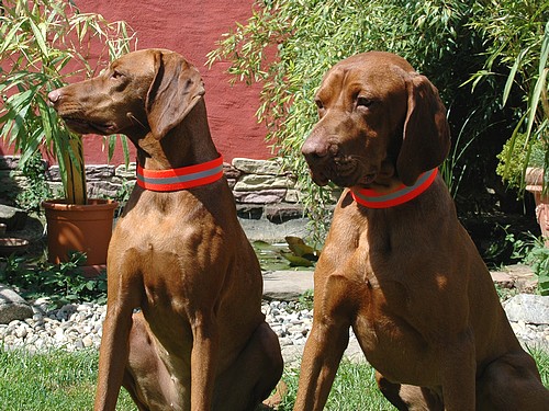 Zum einen verringerte diese Halsung die Gefahr, daß der Hund von einem ansitzenden Jäger mit Wild verwechselt wird, zum anderen reflektieren diese Halsungen hervorragend das Licht herankommender Fahrzeuge. Außerdem kann man diese Halsungen mit der Telefon- oder Handynummer beschriften, daß sofort reagiert werden kann, falls der Hund mal bei der Jagd oder beim Spaziergang abhanden kommt und von jemandem gefunden wird.