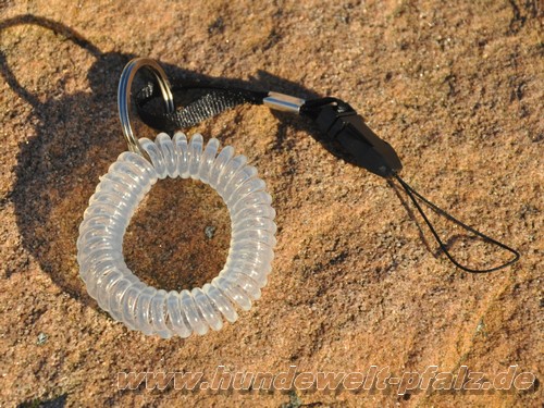 Mit hochwertigen Schlüsselring und zusätzlichem Verlängerungsband mit Clickverschluß zum schnellen abnehmen des Clickers - dieses gewährleistet, dass der Clicker immer ohne lästiges Ziehen gut in der Hand liegt und einfach mit einer Hand greifbar ist.
