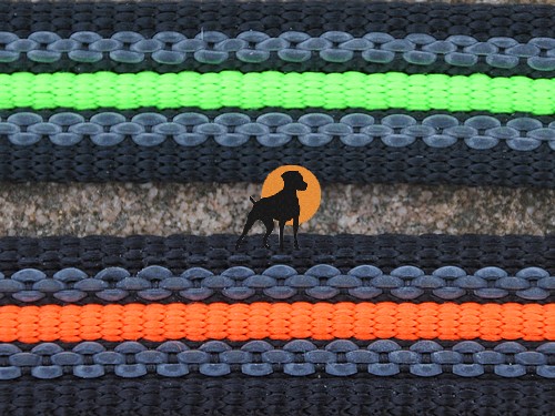 Länge: ca. 100cm Breite: 17mm Farben: schwarz/grün oder schwarz/orange. Basisfarbe dieser Leine ist immer schwarz.