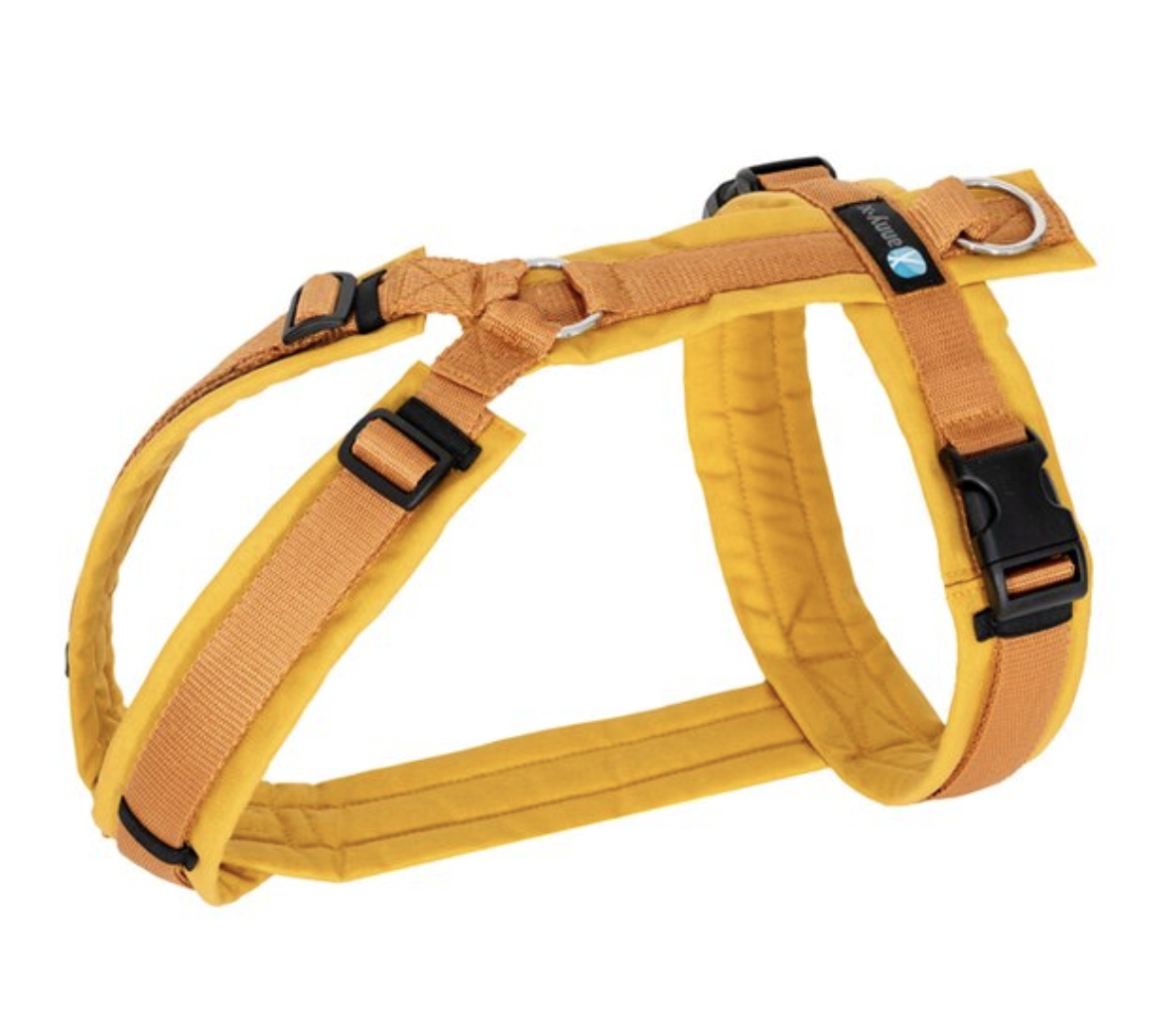 Die umlaufenden Gurte im Brustbereich bilden dank des langen Unterbruststegs einen bewegungsfreundlichen Abstand zu den Vorderbeinen, so dass die Achseln geschont werden. Das Gurtband ist in der kleinsten Einstellung komplett mit luftdurchlässigen Schaumstoff gepolstert und dieser wiederum ist mit Cordura (hoch abriebfestes Material) eingefasst.