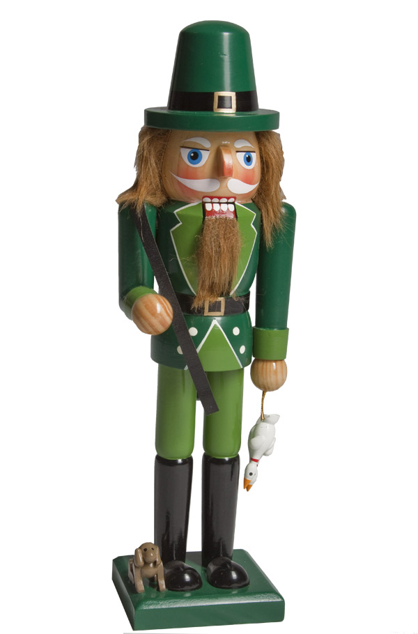 Liebevolle Feinarbeit macht diese Figur zu einem echten Hingucker. Selbst eine erlegte Ente hat dieser Jäger-Nussknacker.