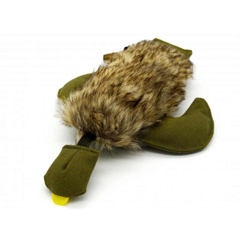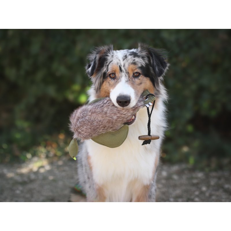 Der Dummy ist 31 cm lang und besteht aus Kunstfell, das dem natürlichen Fell von Wildtieren sehr ähnlich ist, was den Dummy für Ihren Hund besonders interessant macht. Außerdem ist er mit seinen 300 g leicht genug, um von Hunden aller Größen getragen zu werden, aber auch schwer genug, um ein realistisches Trainingserlebnis zu bieten. Der Dummy erinnert in seiner Form an eine Ente und ist perfekt geeignet, um beispielsweise Ihren Jagdhund spielerisch an das Apportieren von Wild heranzuführen.