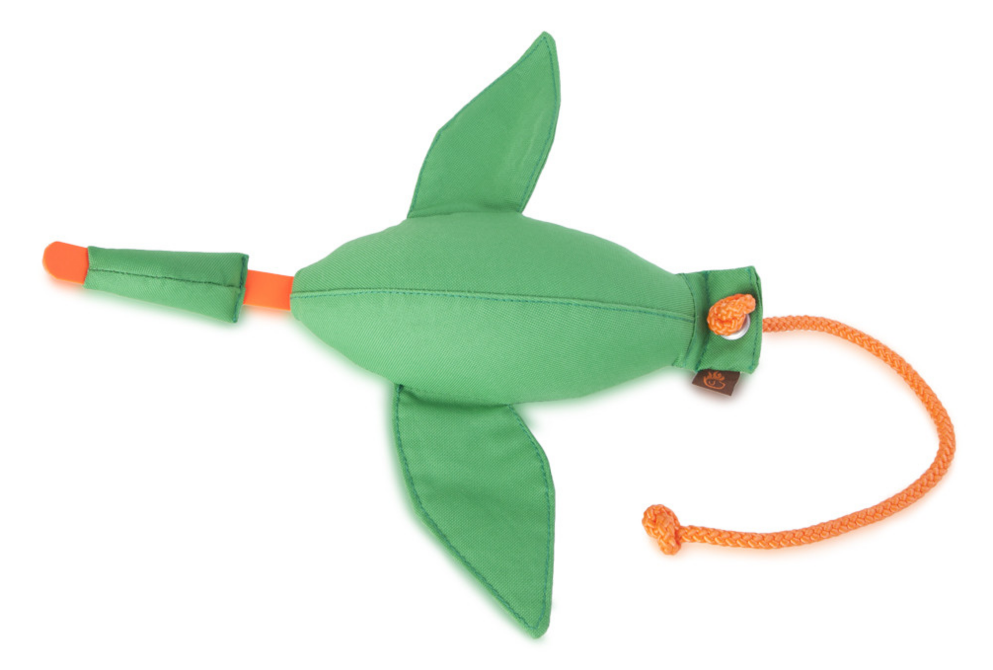 Diese Imitation einer Ente eignet sich hervorragend für das Erlernen des Apportierens von kleinem Federvieh. Gerade durch ihr naturgetreues Design, das den Körper des Vogels nachahmt, besonders die abstehenden Flügel, werden Hunde bestens auf echtes Flugwild vorbereitet. Das Entendummy ist mit einer praktischen Schnur ausgestattet, die einen langen Wurf ermöglicht. Es besteht aus besonders robustem Nylon, der bessere Eigenschaften bei der Wasserarbeit bietet und das Dummy echt wirken lässt.