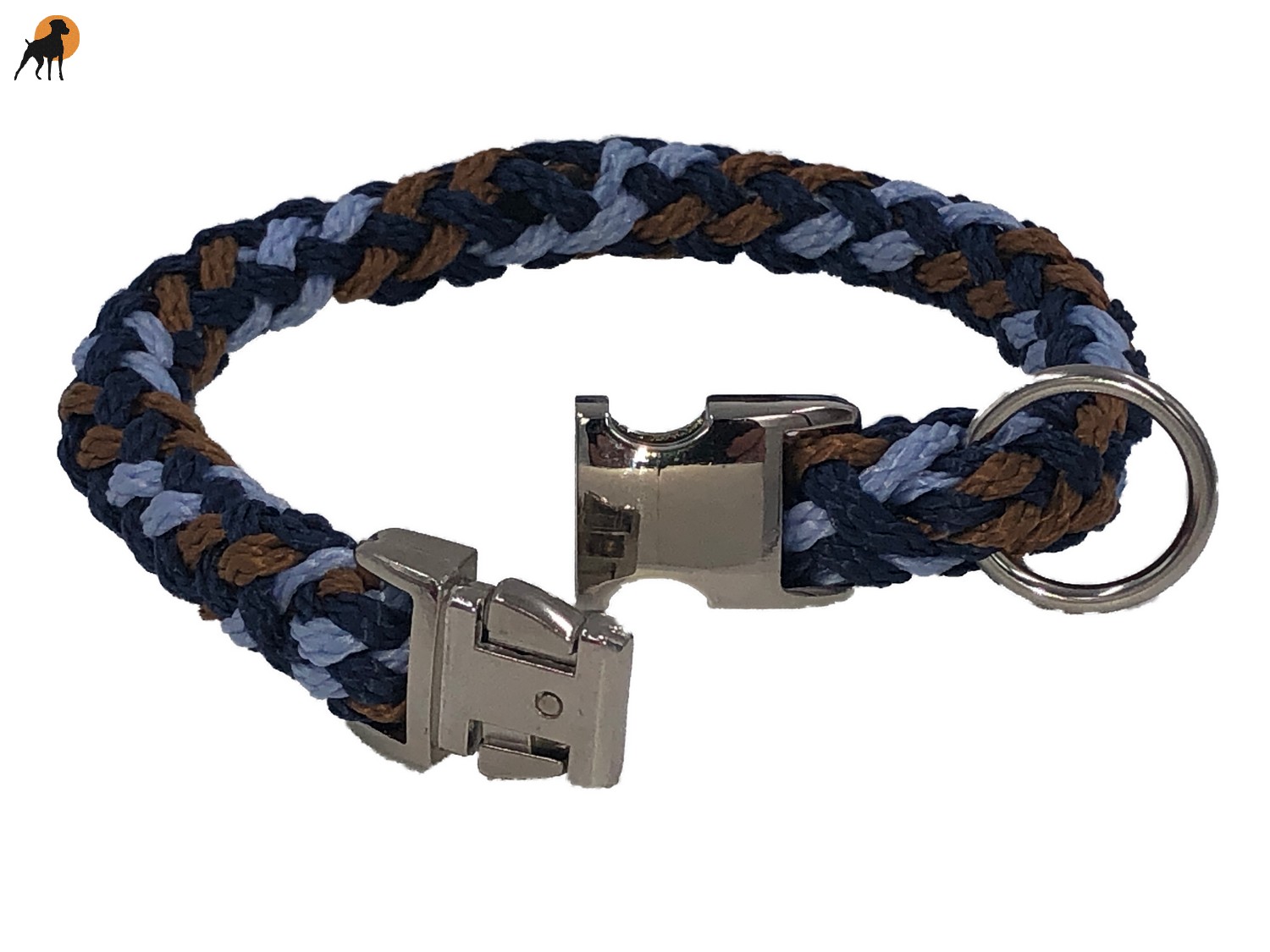 Polypropylentauwerk Ø 9mm doppelt geflochten (ergibt dann beim Halsband einen Durchmesser von ca. 14mm) - Verschluß ALU hochglanz oder matt. Rundring immer verchromt.