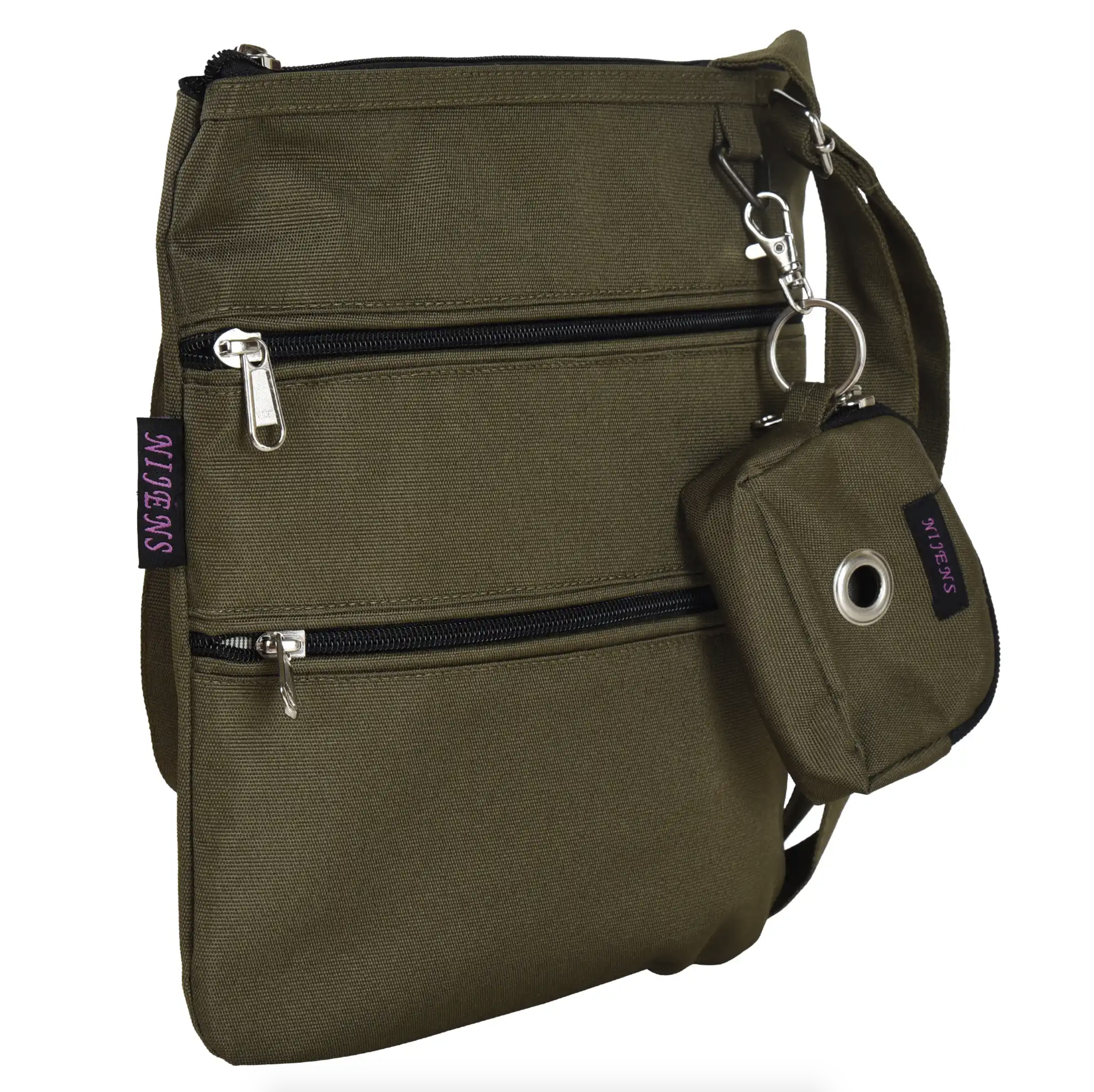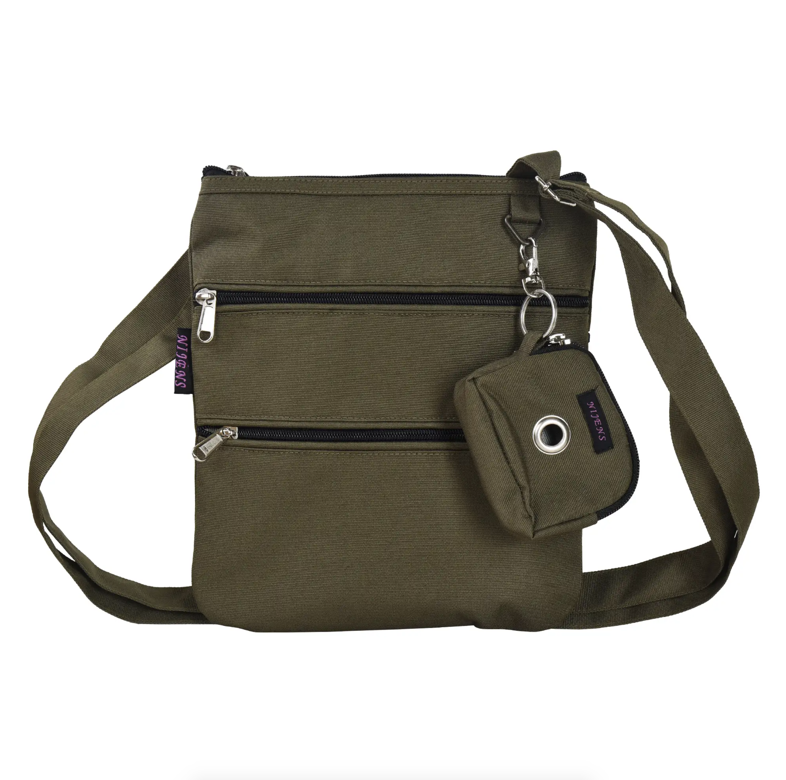 Unsere Gassi-Umhängetasche ist mit einem extra Leckerlifach ausgestattet, welches den Inhalt der anderen Fächer vor Fett und Krümeln schützt. Die kleinen Leckereien deines Vierbeiners können umweltbewusst und nachhaltig ohne Plastiktüte direkt in das Leckerlifach eingefüllt werden, da der Innenraum aus einem wasserabweisenden und auswaschbaren Innenfutter besteht.