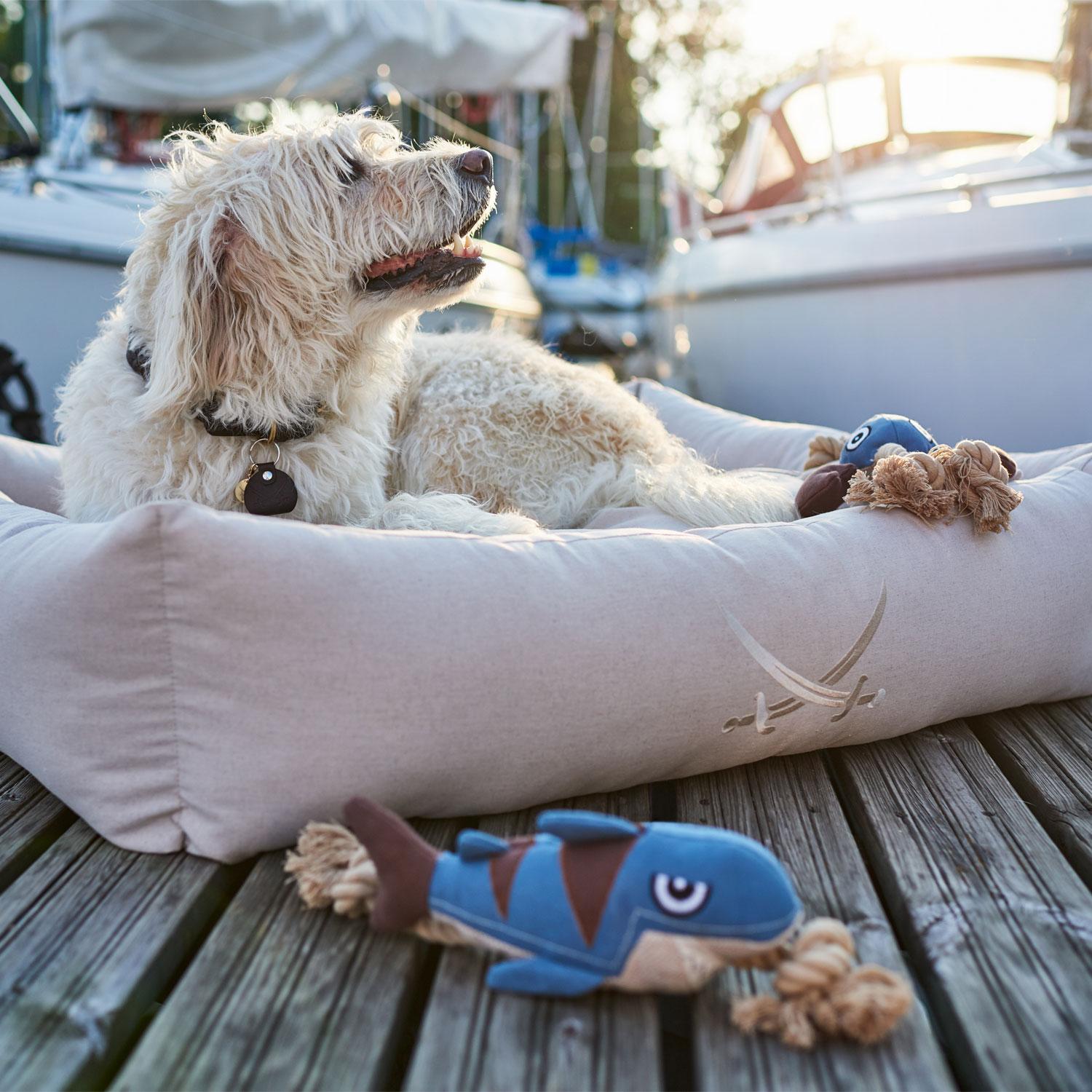 Harte Schale, Tau im Kern – dank des durchlaufenden Knotenseils zeigen sich diese kleinen Meeresbewohner besonders beständig im Kampf gegen die Beißattacken der an Land beheimateten Vierbeiner. Das griffige Außenmaterial des Hundespielzeugs CANVAS SANSIBAR RANTUM ist in maritimen Farben gehalten und stellt den Charakter der tierischen Meeresbewohner optimal heraus. Ein Squeaker im Inneren sorgt für akustische Motivation in angenehmer Lautstärke. Sollte das niedliche Kuscheltierchen stark verschmutzt sein, kann es bei 30 °C in der Waschmaschine gewaschen werden. Hinweis: Bitte das Tier beim Spielen nie unbeaufsichtigt lassen. Kein Spielzeug ist unzerstörbar. Um Verletzungen vorzubeugen sollte das Spielzeug regelmäßig auf Beschädigungen oder lose Teile kontrolliert und gegebenenfalls ersetzt werden.