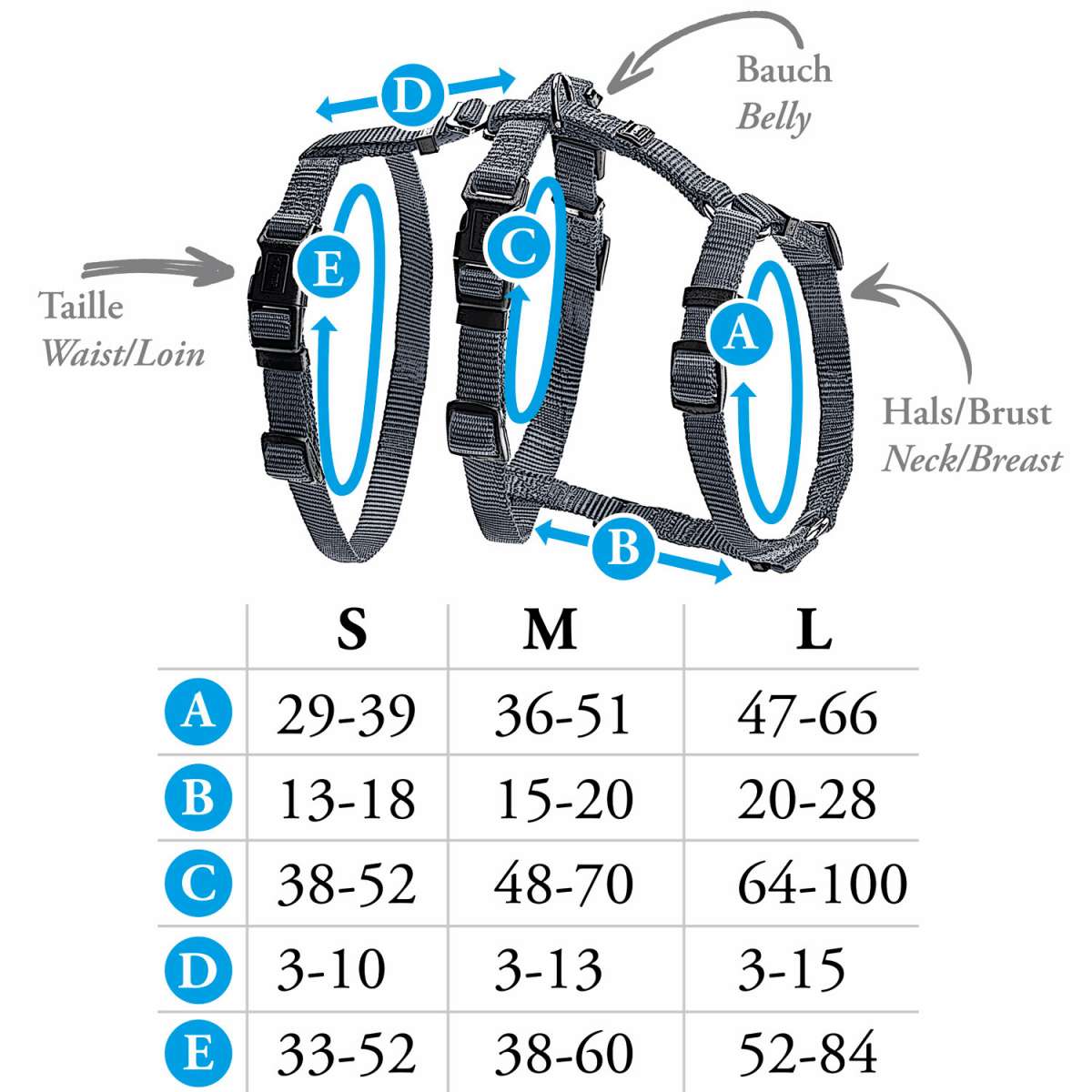 Größe M-L: Hals 47 - 66 cm | Bauch 64 - 100 cm | Breite 2,5 cm