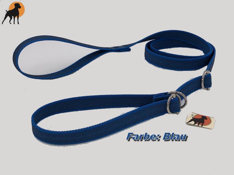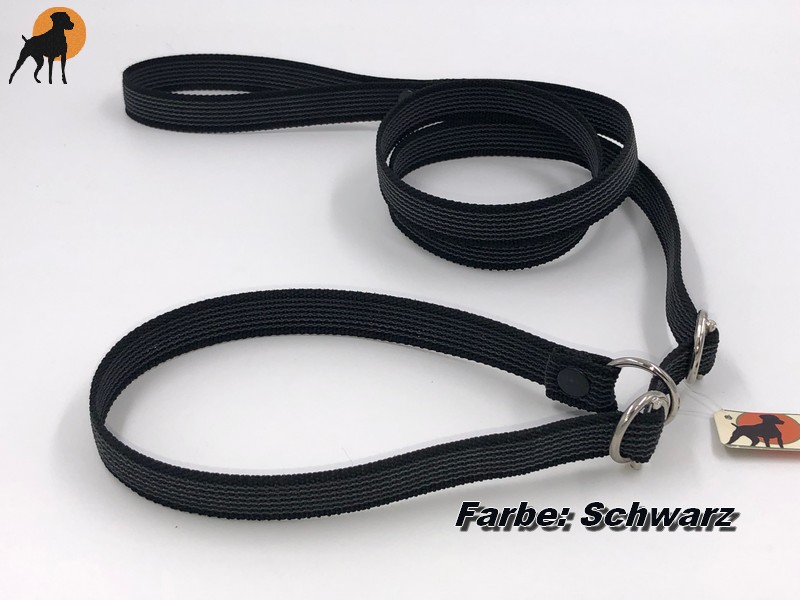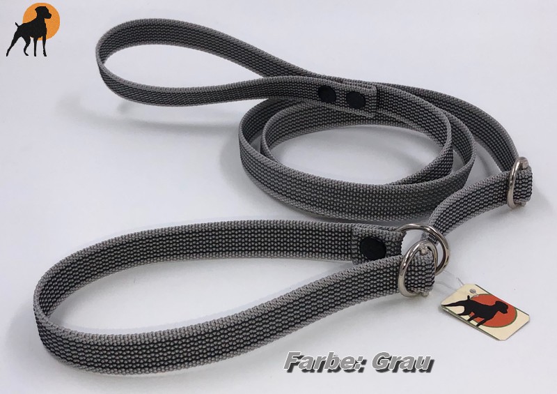Agility/Retrieverleine aus gummiertem Gurtband, aus einem Stück gefertigt.