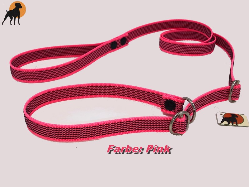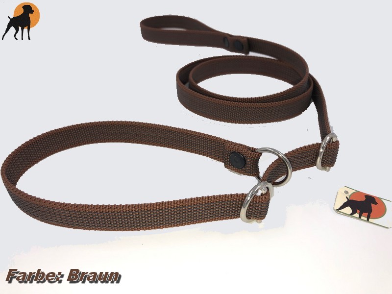 Top Qualität und tadellose Verarbeitung zeichnen diese Leine aus. Das unkomplizierte Handling und der fellschonende Tragekomfort sprechen für sich. Das Halsband an der Leine wird dem Hund über den Kopf gestreift . Mit 2 Stegringen werden der Halsumfang und Zugstop eingestellt – fertig!.