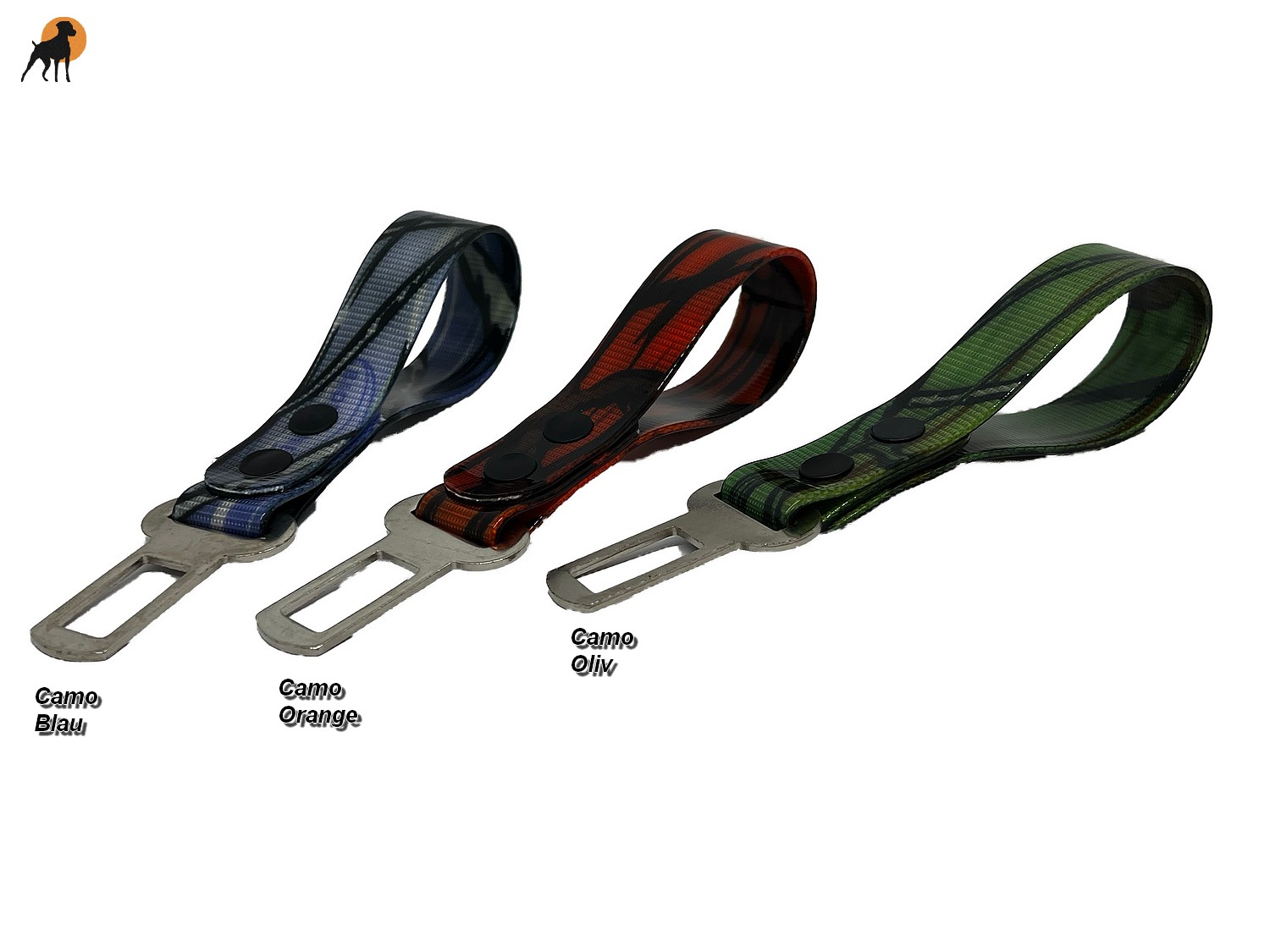 Artikel: KFZ Gurtschloss Adapter mit Schlaufe aus Biothane-Motivband (Jagdhunde, Jagd, Camo)