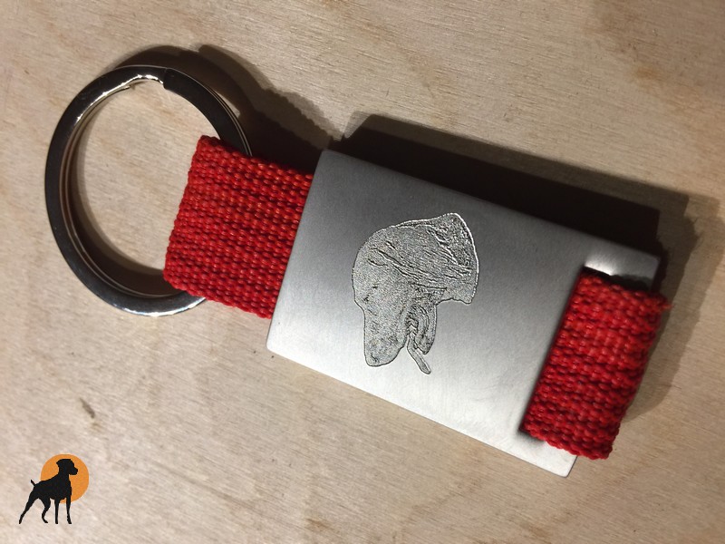 Alu-Schlüsselanhänger, Motiv: Magyar Vizsla Drahthaar mit Ring am Gurtband