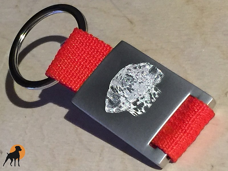 Alu-Schlüsselanhänger, Motiv: Dalmatiner mit Ring am Gurtband