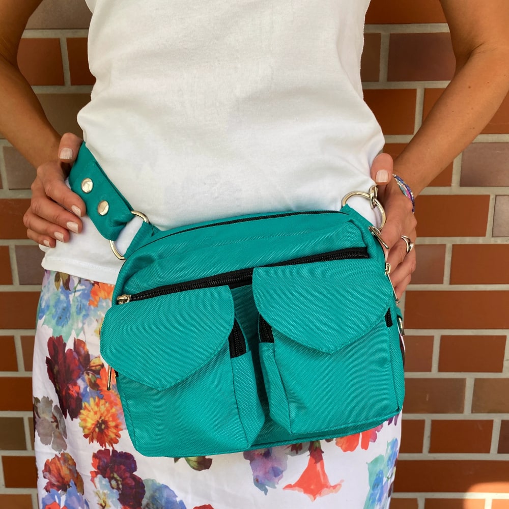 - Die Tasche kann auch als Umhängetasche genutzt werden, dann ist es sinnvoll die Gürtelverlängerung zu nutzen.