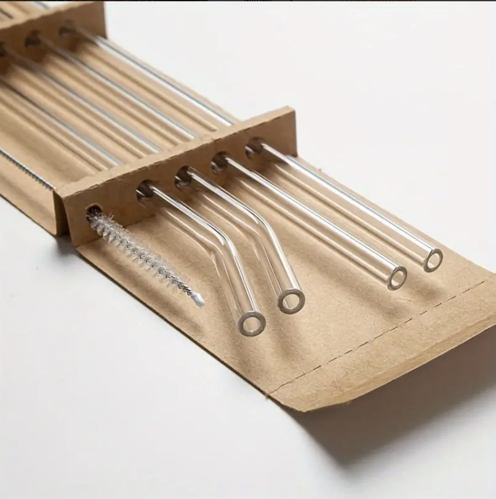 - 4 Glas Strohhalme (2gerade, 2gebogen)